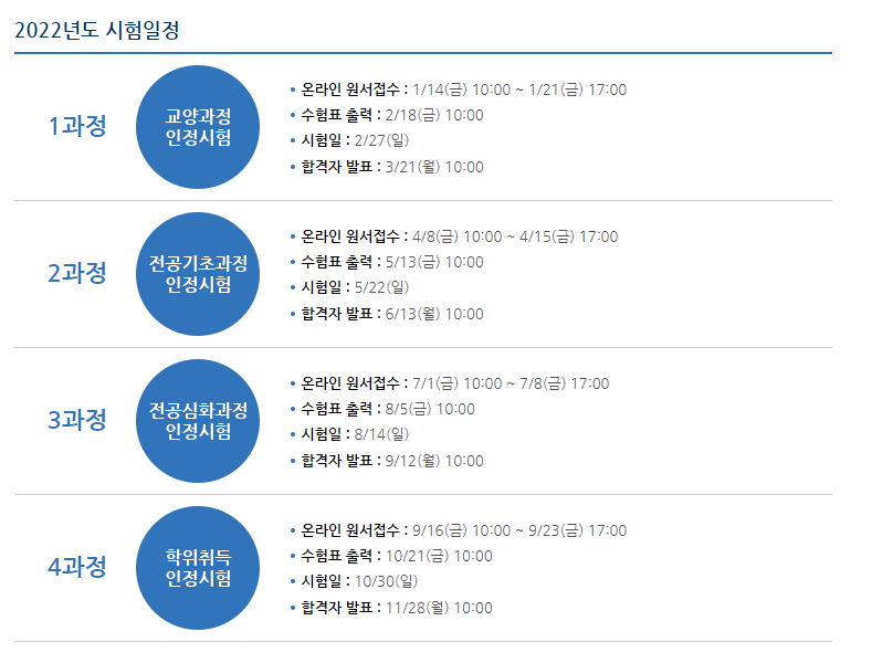 4단계는 시험이 어.... 이름이 학위취득인정시험인 것 처럼 국어 이런것까지 다 쳐야 하는 거라고 한다..